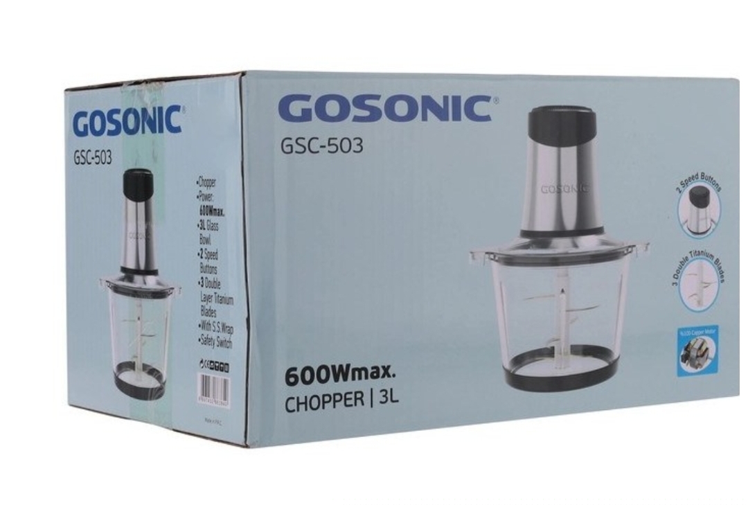 یکی از بهترین خردکن های موجود در بازار با ویژگی های نظیر ، موتور چند سرعته ، تیغه بسیار با کیفیت و کاسه بزرگ برای انجام تمام کارهای روزانه و تهیه غذا ، خردکن 3 لیتری گوسونیک مدل GSC-503 می باشد.جنس کاسه در نظر گرفته شده برای این خردکن گوسونیک از شیشه تهیه شده است. ظرفیت این کاسه 3 لیتر بوده که می تواند برای تهیه یک باره و با سریع مواد غذایی مناسب باشد.توان مصرفی موتور خردکن GSC-503 گوسونیک دارای 600 وات می باشد. این موتور از نوع چند سرعته بوده که می تواند بسته به نیاز کاربرد از سرعت 1 یا 2 بهرهمند شوید.تیغه تعبیه شده برای این خردکن از نوع تیتانیومی بسیار تیز و با دوام ساخته شده است. این تیغه با داشتن 6 پره می تواند انواع مواد غذایی شامل سبزیجات ، سیب زمینی ، پیاز و سیر ، هویچ و کرفس ، مواد پروتئینی و سایر مواد غذایی را به راحتی و در کمترین زمان خرد کند.از دیگر قابلیت های این محصول می توان به قفل ایمنی ، دستگیره مخصوص حمل و نقل و تخلیه مواد غذایی و پایه ضد لغزش اشاره کنیم.
