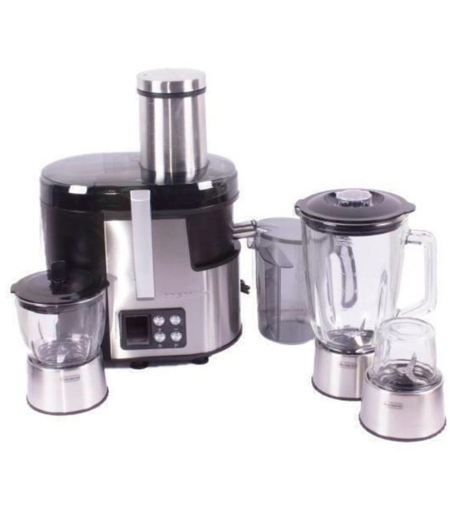 توان: 800W تعداد عملکرد دستگاه: چهارکاره دارای عملکرد: آبمیوه گیر, خردکن, مخلوط کن, آسیاب ظرفیت مخزن آبمیوه: 1L تعداد تنظیمات سرعت: 5 سرعته کنترل پنل: دیجیتالی جنس بدنه: استیل و پلاستیک